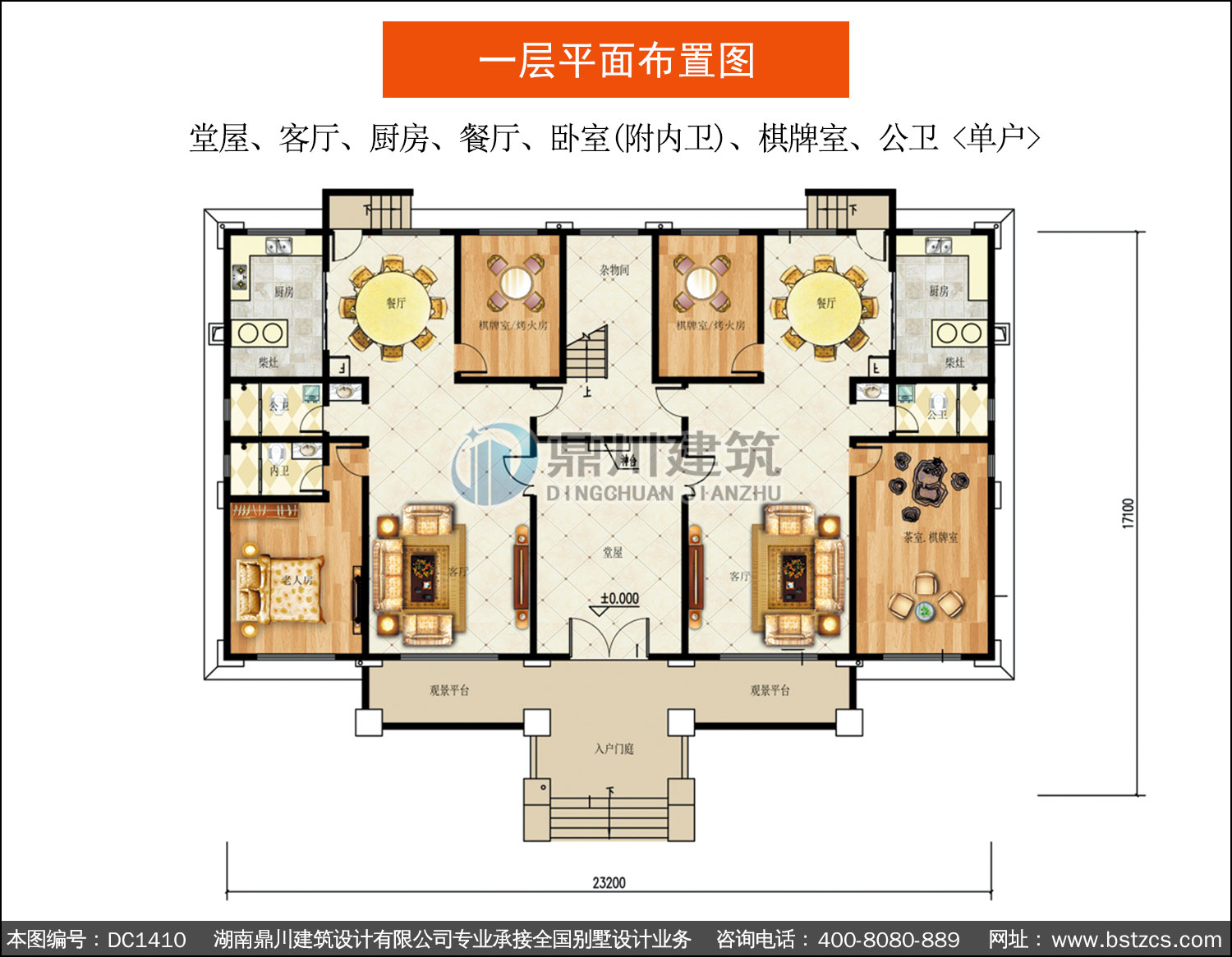 一 層: 堂屋、客廳、廚房、餐廳、臥室(附內(nèi)衛(wèi))、棋牌室、公衛(wèi) <單戶>