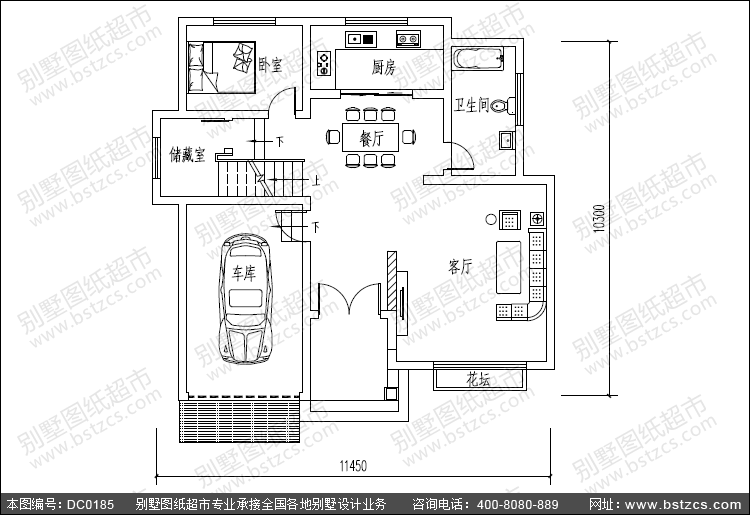| 一 層: | 客廳、臥室、廚房、餐廳、儲藏室、衛(wèi)生間、車庫 | |||