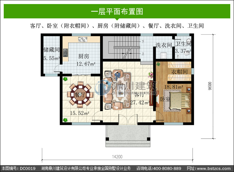 一 層: 客廳、臥室(附衣帽間)、廚房(附儲藏間)、餐廳、洗衣間、衛(wèi)生間;