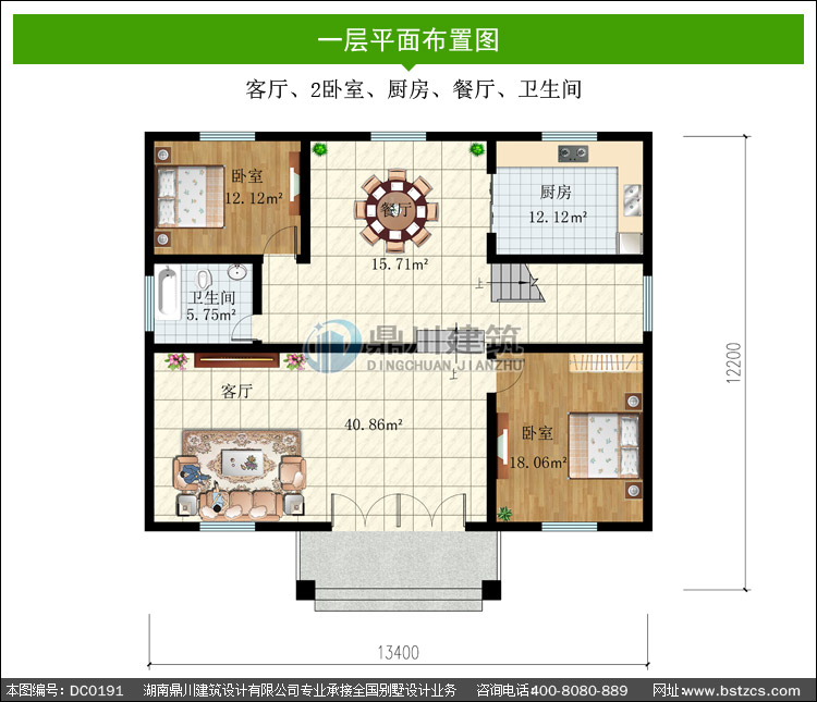 | 一 層: | 客廳、2臥室、廚房、餐廳、衛(wèi)生間 | |||
