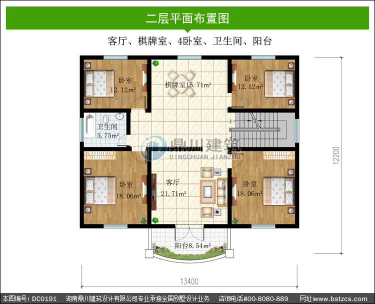 | 二 層: | 客廳(附陽臺)、棋牌室、4臥室、衛(wèi)生間 | |||