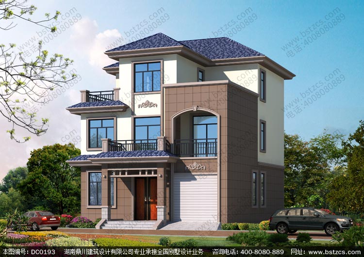 新中式三層帶露臺農(nóng)村別墅圖紙及效果圖_農(nóng)村別墅設計,鼎川別墅