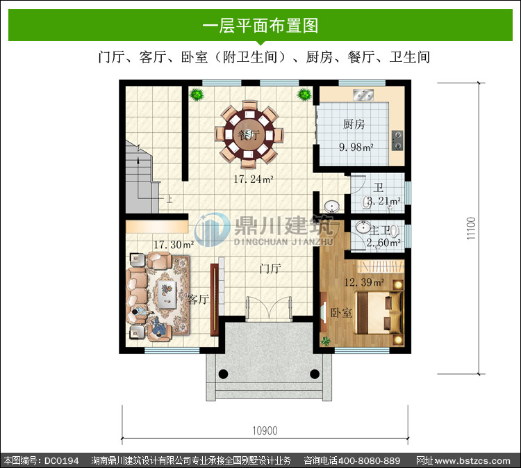 | 一 層: | 門廳、客廳、臥室(附衛(wèi)生間)、廚房、餐廳、衛(wèi)生間; | |||