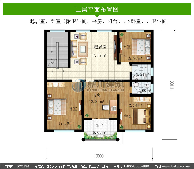 | 二 層: | 起居室、臥室(附衛(wèi)生間、書房、附陽臺)、2臥室、衛(wèi)生間 | |||