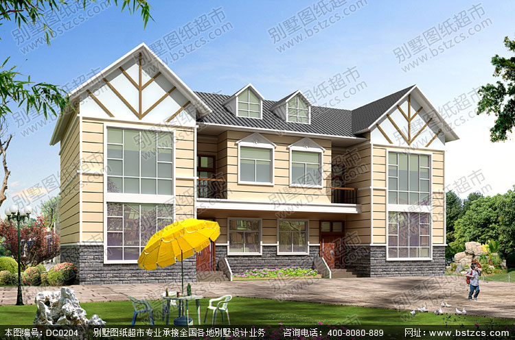 二層框架式雙拼別墅設(shè)計(jì)圖效果圖_別墅設(shè)計(jì)圖紙,農(nóng)村房屋設(shè)計(jì)圖
