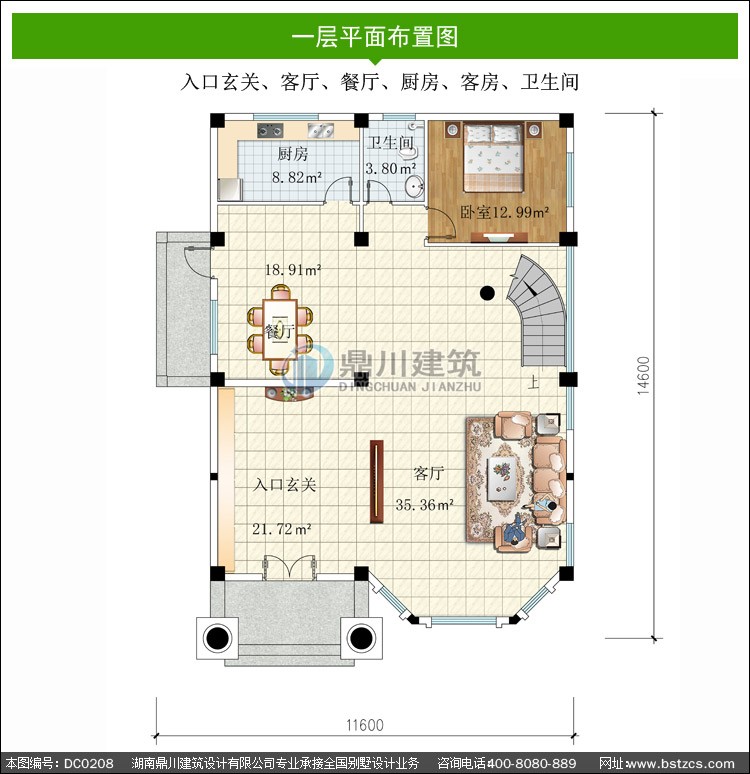 | 一 層: | 入口玄關(guān)、客廳、餐廳、廚房、客房、衛(wèi)生間 | |||