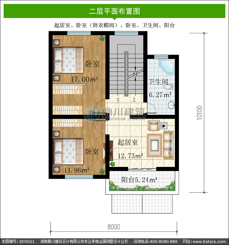 | 二 層: | 起居室、臥室(附衣帽間)、臥室、衛(wèi)生間、陽臺 | |||
