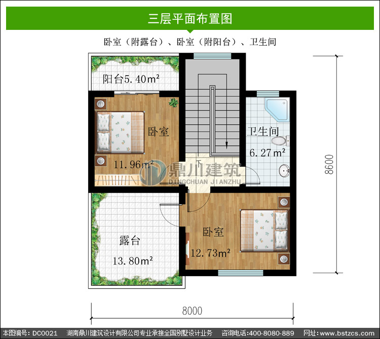 | 三 層: | 臥室(附露臺)、臥室(附陽臺)、衛(wèi)生間 | |||