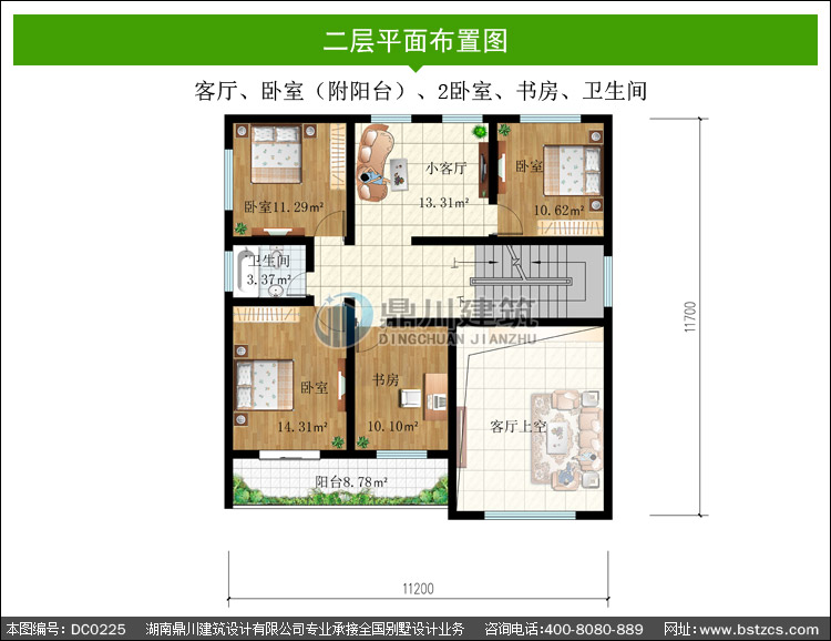 | 二 層: | 客廳、臥室(附陽臺)、2臥室、書房、衛(wèi)生間 | |||