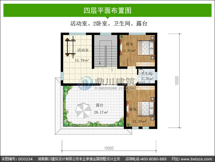 四 層: 活動室、2臥室、衛(wèi)生間、露臺