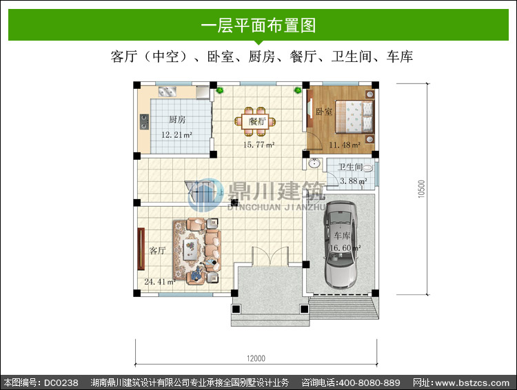 | 一 層: | 客廳(中空)、臥室、廚房、餐廳、衛(wèi)生間、車庫 | |||