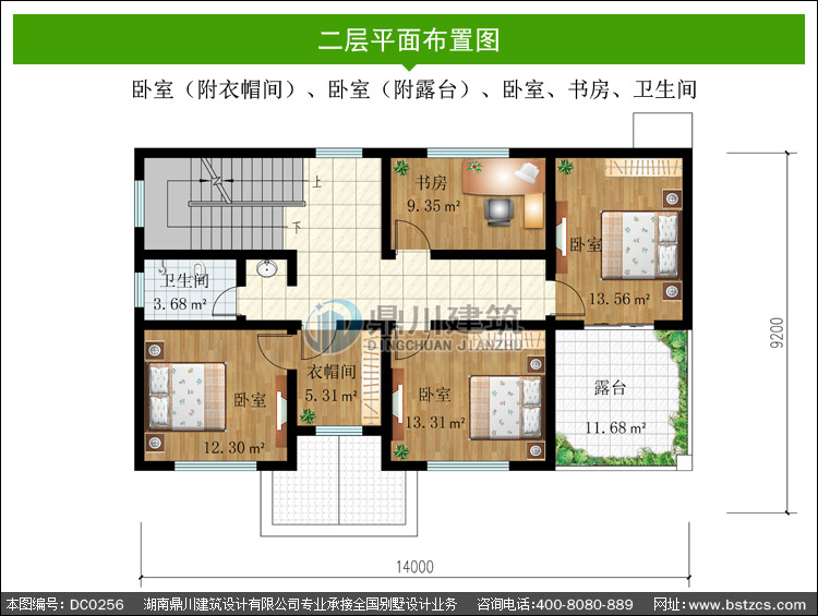 | 二 層: | 臥室(附衣帽間)、臥室(附露臺)、臥室、書房、衛(wèi)生間 | |||