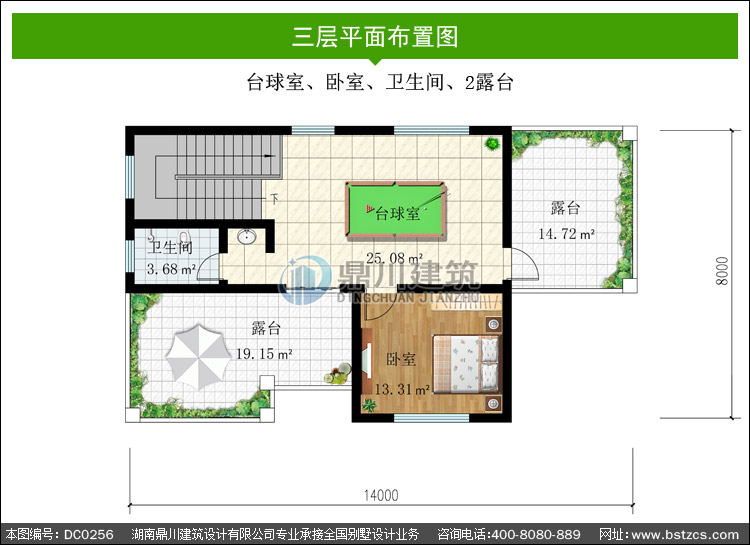 | 三 層: | 臺球室、臥室、衛(wèi)生間、2露臺 | |||