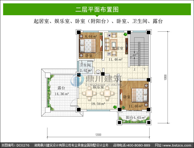 | 二 層: | 起居室、娛樂(lè)室、臥室(附陽(yáng)臺(tái))、臥室、衛(wèi)生間、露臺(tái) | |||