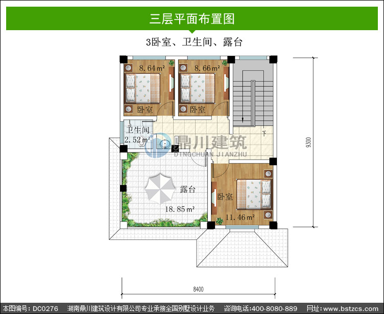 | 三 層: | 3臥室、衛(wèi)生間、露臺(tái) | |||