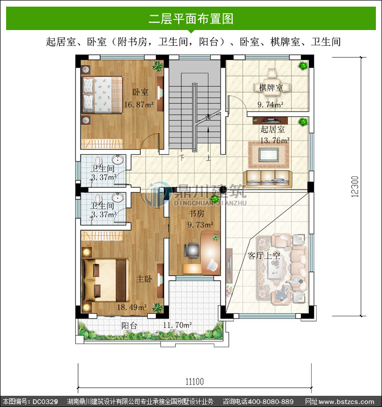 | 二 層: | 起居室、臥室(附書(shū)房,衛(wèi)生間,陽(yáng)臺(tái))、臥室、棋牌室、衛(wèi)生間 | |||