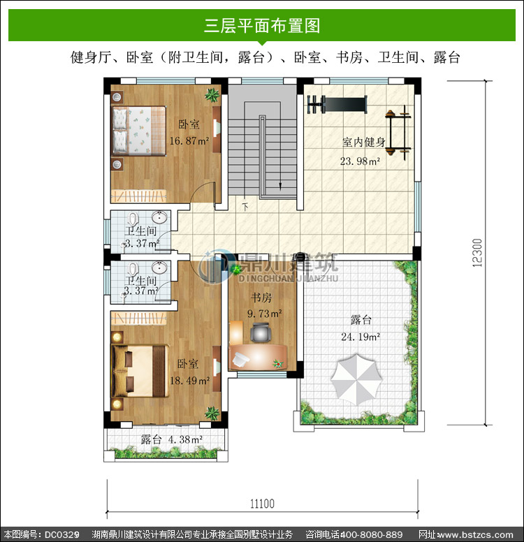 | 三 層: | 健身廳、臥室(附衛(wèi)生間,露臺(tái))、臥室、書(shū)房、衛(wèi)生間、露臺(tái) | |||