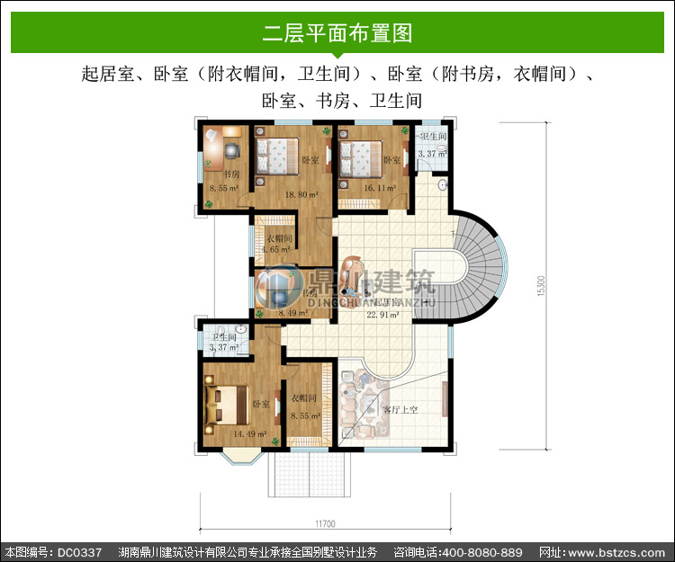 | 二 層: | 起居室、臥室(附衣帽間,衛(wèi)生間)、臥室(附書房,衣帽間)、臥室、書房、衛(wèi)生間 | |||