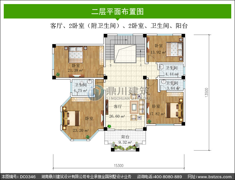| 二 層: | 客廳、2臥室(附衛(wèi)生間)、2臥室、衛(wèi)生間、陽(yáng)臺(tái) | |||