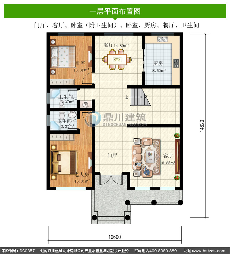 一 層: 門廳、客廳、臥室(附衛(wèi)生間)、臥室、廚房、餐廳、衛(wèi)生間