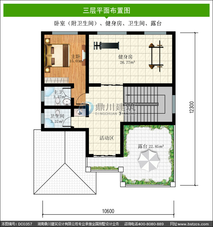 三 層: 臥室(附衛(wèi)生間)、健身房、衛(wèi)生間、露臺