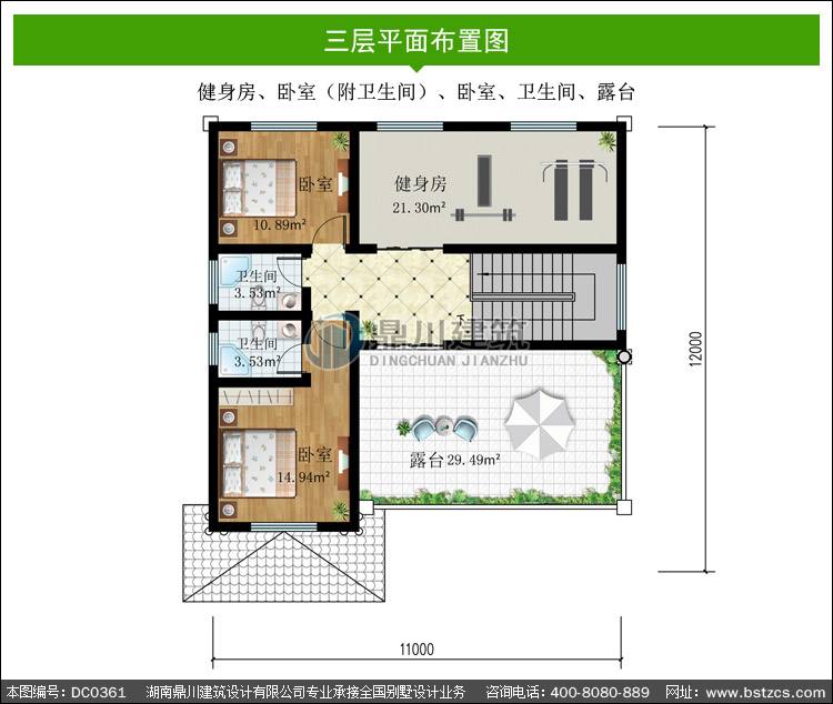 | 三 層: | 健身房、臥室(附衛(wèi)生間)、臥室、衛(wèi)生間、露臺(tái) | |||