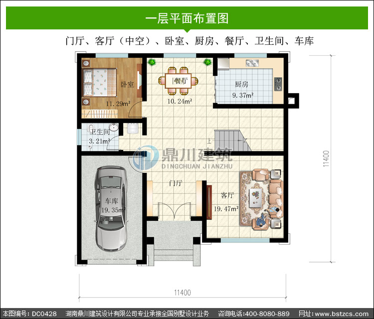 開間: 11.4米 進(jìn)深: 11.4米 占地面積: 124.99平方米 建筑面積: 228.26平方米