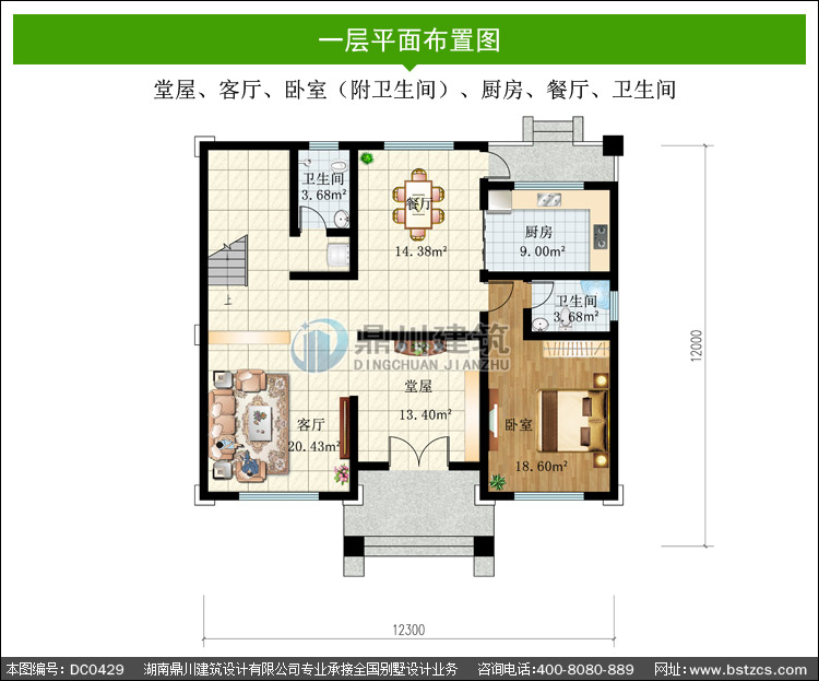 | 一 層: | 堂屋、客廳、臥室(附衛(wèi)生間)、廚房、餐廳、衛(wèi)生間 | |||