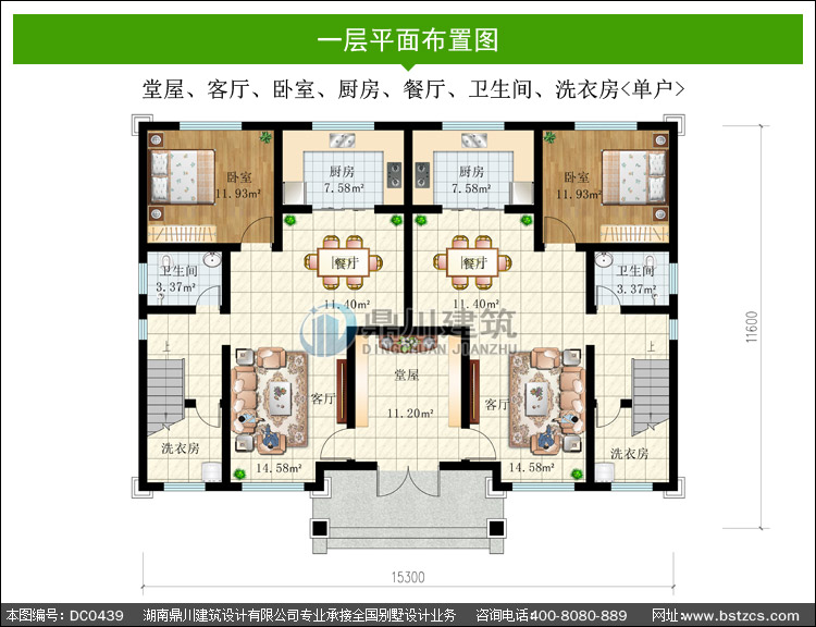 二層共堂屋雙拼別墅設(shè)計圖紙_農(nóng)村二層雙拼別墅設(shè)計,鼎川別墅圖紙