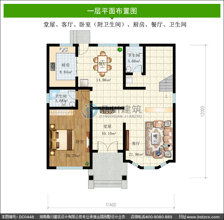| 開間: 11.4米 | 進(jìn)深: 12米 | 占地面積: 138.97平方米 | 建筑面積: 301.94平方米 |