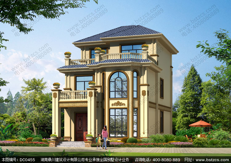 歐式三層帶露臺小戶型別墅設(shè)計圖紙及效果圖_農(nóng)村三層別墅設(shè)計,鼎川建筑