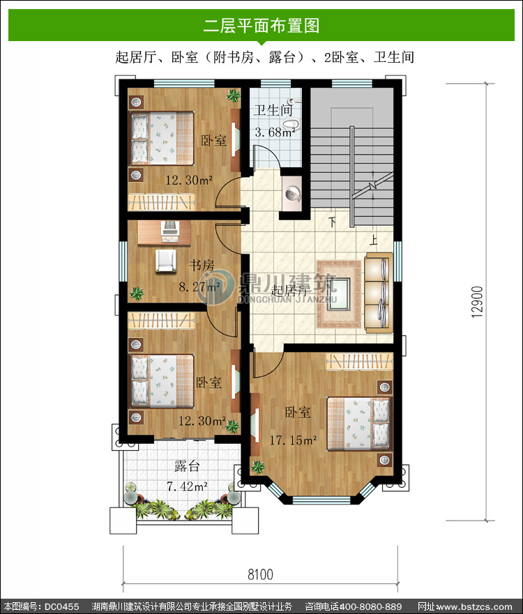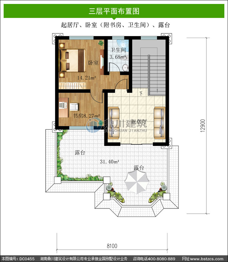 | 三 層: | 起居廳、臥室(附書房、衛(wèi)生間)、露臺 | |||