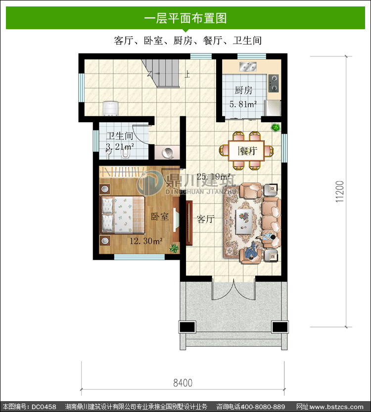 一 層: 客廳、臥室、廚房、餐廳、衛(wèi)生間