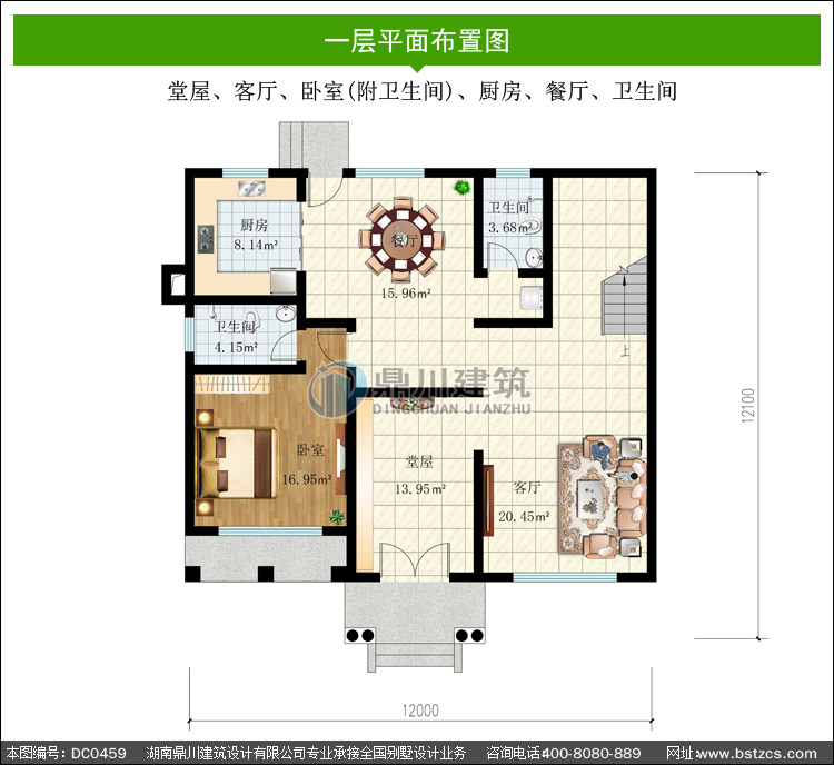 一 層: 堂屋、客廳、臥室(附衛(wèi)生間)、廚房、餐廳、衛(wèi)生間