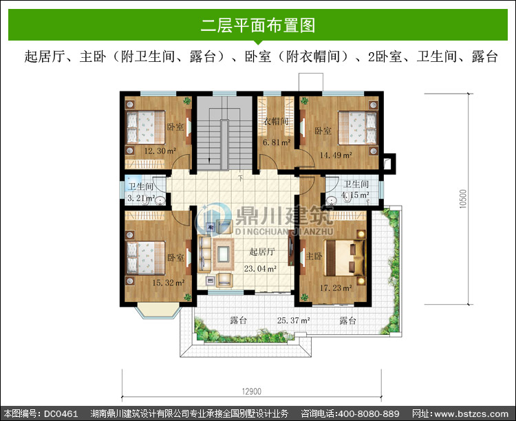 新農(nóng)村二層帶露臺別墅設(shè)計效果圖及施工圖_農(nóng)村兩層別墅設(shè)計圖紙,鼎川建筑