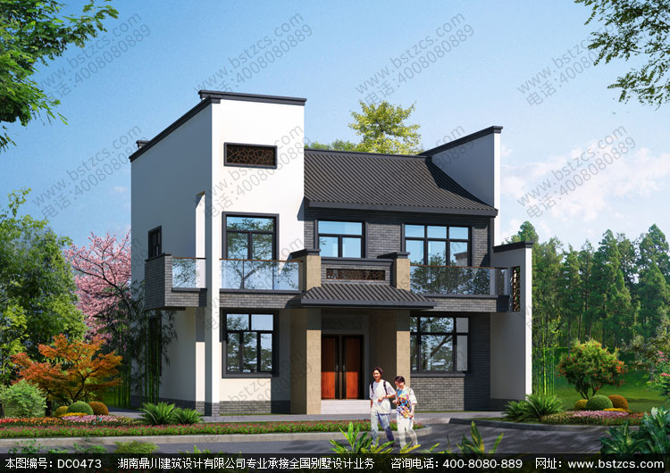 二層中式帶院子設(shè)計圖紙及效果圖_農(nóng)村兩層別墅圖紙,鼎川建筑