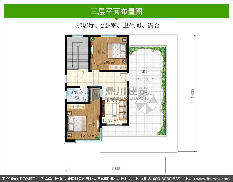 | 三 層: | 起居廳、2臥室、衛(wèi)生間、露臺 | |||