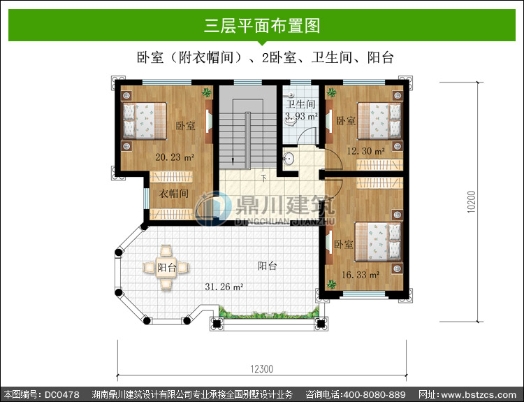 | 三 層: | 臥室(附衣帽間)、2臥室、衛(wèi)生間、陽臺 | |||