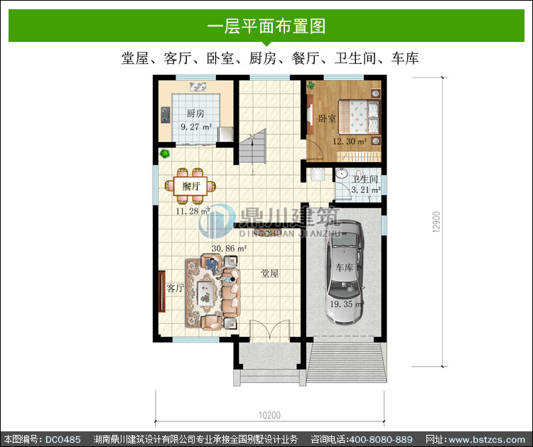 | 一 層: | 堂屋、客廳、臥室、廚房、餐廳、衛(wèi)生間、車庫 | |||