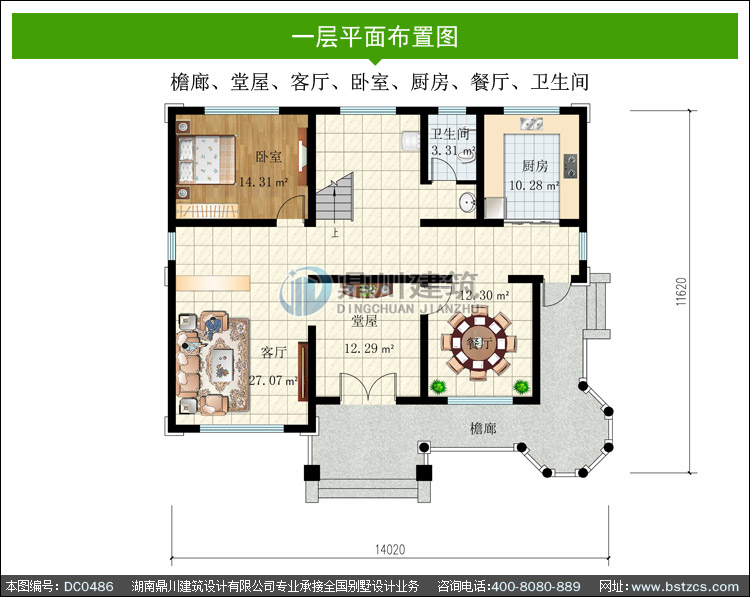 | 一 層: | 檐廊、堂屋、客廳、臥室、廚房、餐廳、衛(wèi)生間 | |||