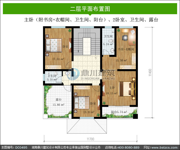 二 層: 主臥(附書房+衣帽間、衛(wèi)生間、陽臺)、2臥室、衛(wèi)生間、露臺