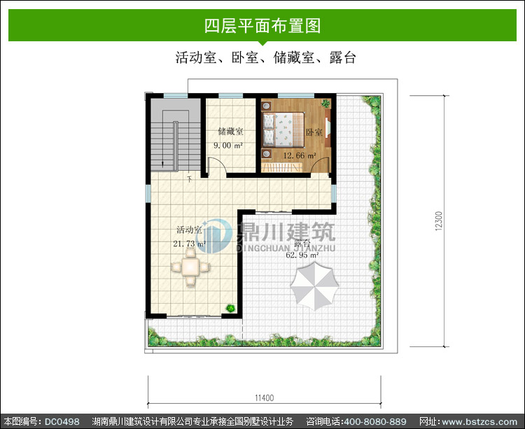 | 四 層: | 活動(dòng)室、臥室、儲(chǔ)藏室、露臺(tái) | |||