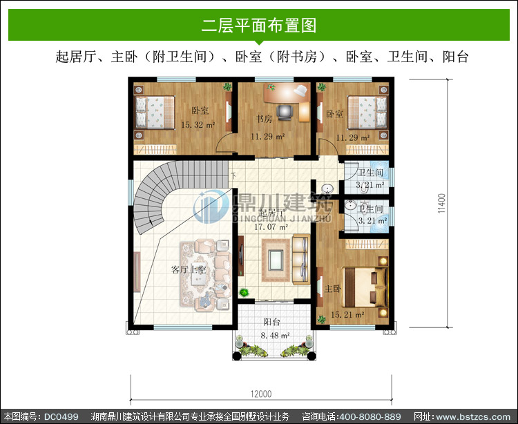 | 二 層: | 起居廳、主臥(附衛(wèi)生間)、臥室(附書房)、臥室、衛(wèi)生間、陽臺 | |||