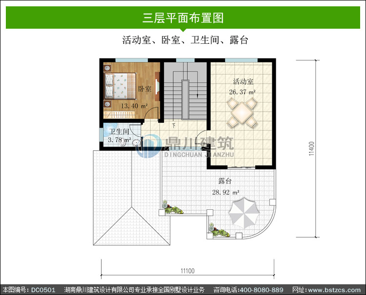 | 三 層: | 活動(dòng)室、臥室、衛(wèi)生間、露臺(tái) | |||