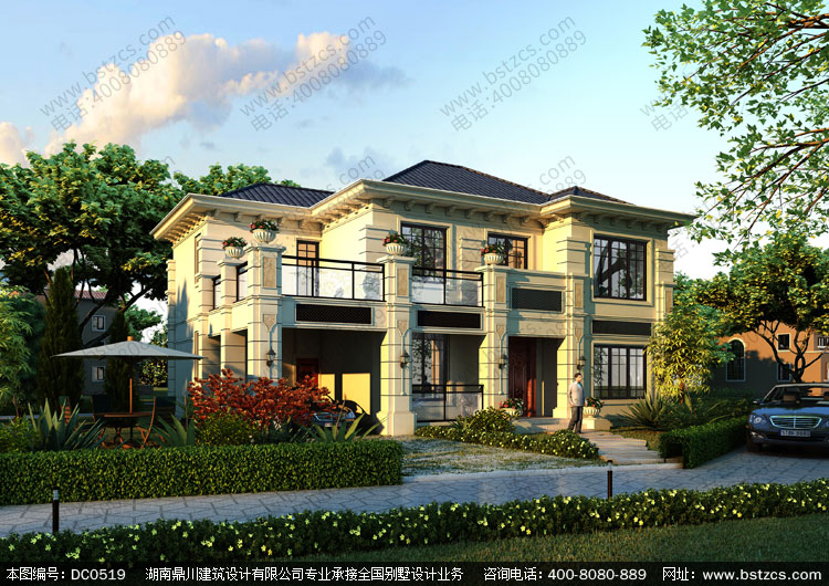 歐式二層帶車庫(kù)和露臺(tái)農(nóng)村自建房屋設(shè)計(jì)圖紙_農(nóng)村二層別墅設(shè)計(jì)圖紙,鼎川建筑