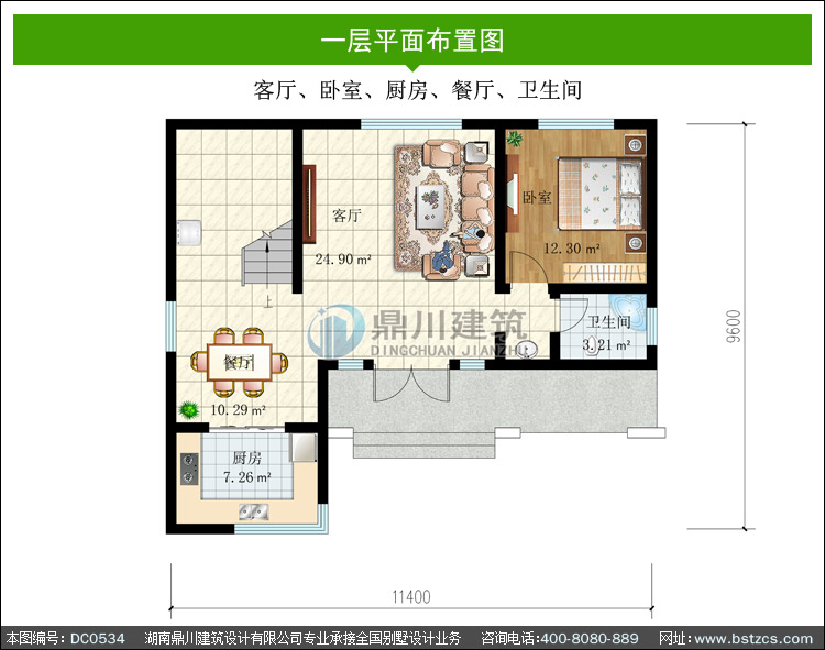 一 層: 客廳、臥室、廚房、餐廳、衛(wèi)生間
