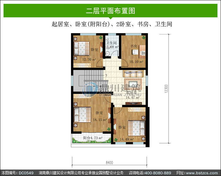 | 二 層: | 起居室、臥室(附陽(yáng)臺(tái))、2臥室、書房、衛(wèi)生間 | |||