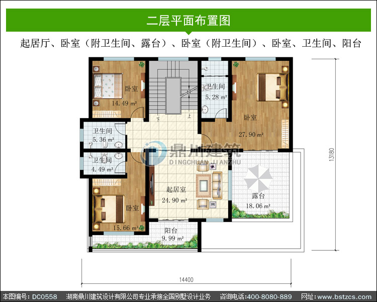 | 二 層: | 起居廳、臥室(附衛(wèi)生間、露臺(tái))、臥室(附衛(wèi)生間)、臥室、衛(wèi)生間、陽(yáng)臺(tái) | |||