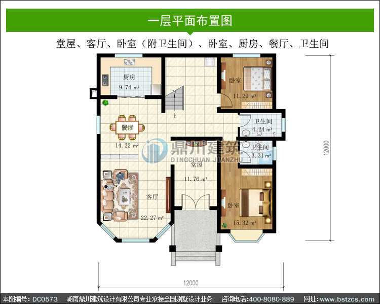 開間: 12米 進(jìn)深: 12米 占地面積: 142.44平方米 建筑面積: 381.17平方米