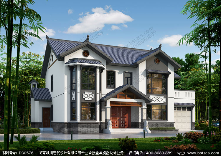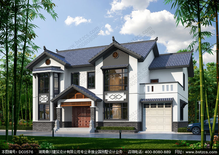 新中式二層帶露臺自建房別墅圖紙_農(nóng)村兩層別墅設(shè)計,鼎川建筑